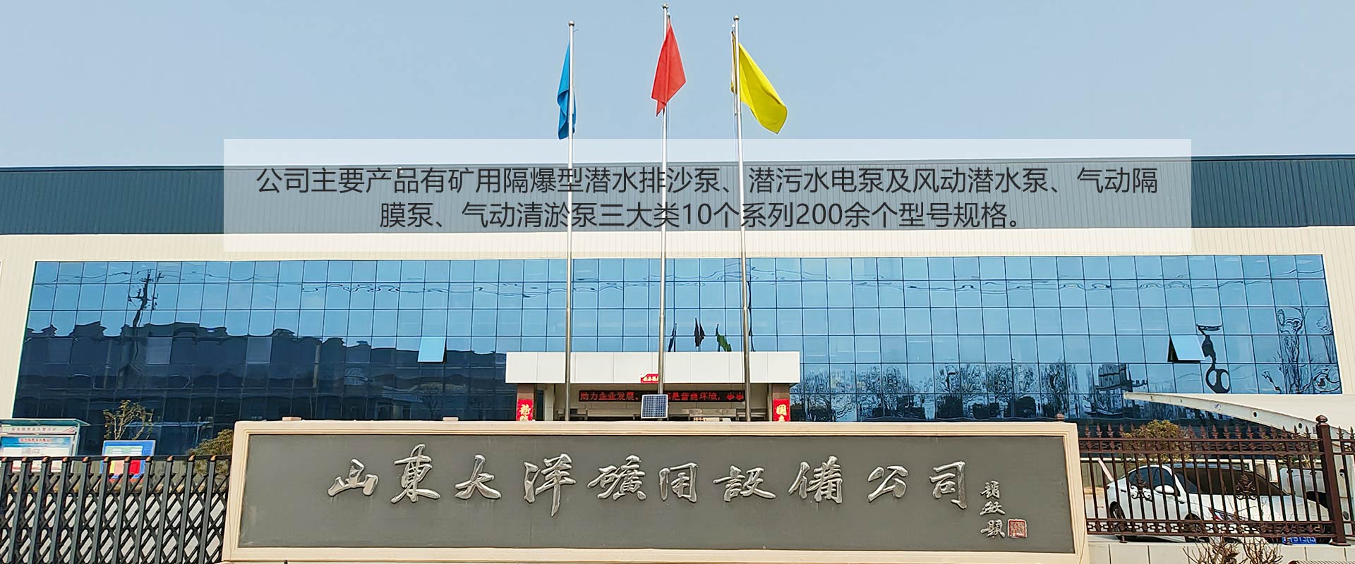山東大洋礦用設備有限公司創建于1996年,注冊資金5500萬元。是專業生產礦用隔爆型潛水排沙電泵、潛污水電泵及礦用風動潛水泵的高新技術企業,為全國煤炭行業機電設備定點生產企業。